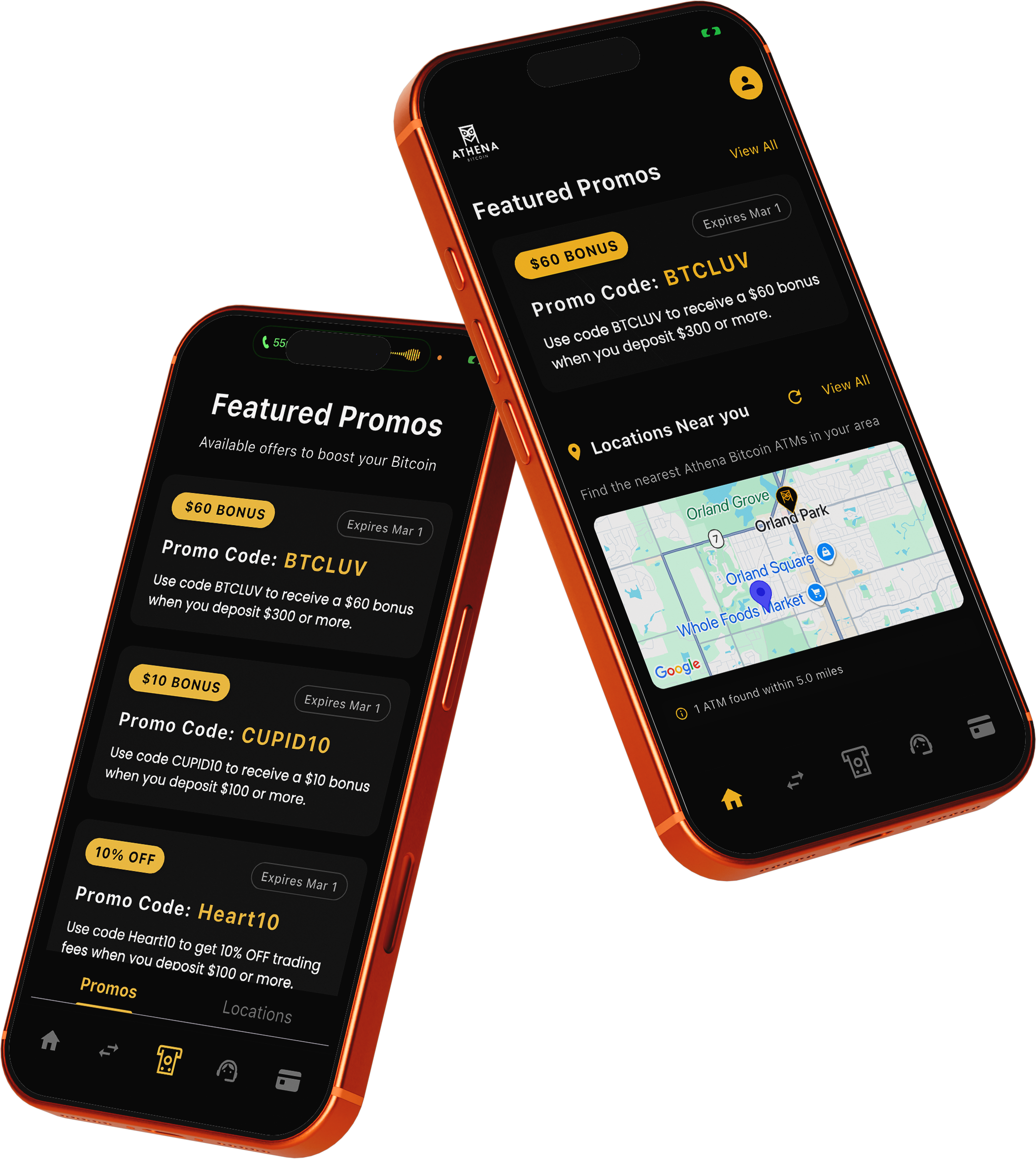 Here’s where it gets exciting. App users get access to special promo codes and bonuses that aren’t available at our ATMs alone. Featured right on your home screen, you’ll see the latest deals like: